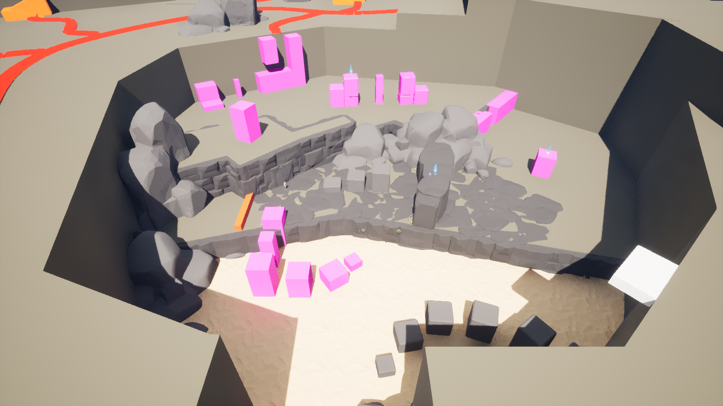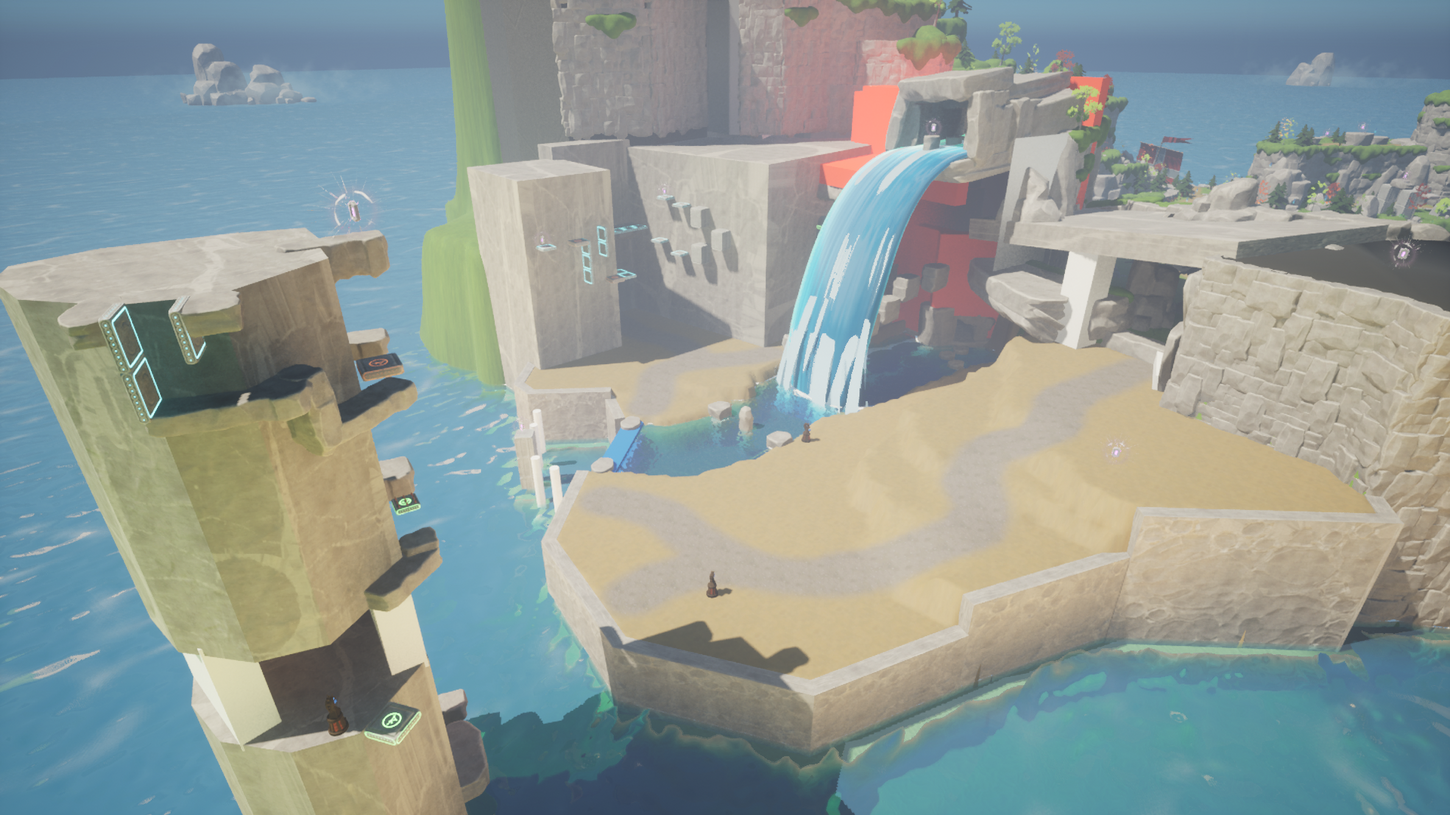I blocked out the waterfall beach with the different layers and platforms we had planned for and created traversal challenges between them. I based challenges in the area on using different layers and using the water around the area.
